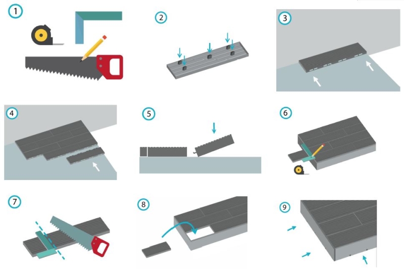 Seda on imelihtne paigaldada. Parima hinna ja kvaliteediga terrassi või veranda saad just neist moodulitest valmistada. Kui oled otsustanud kasutada moodullahendust, siis oled õiges kohas. Sobivad kasutamiseks ka minimaalse kaldega alustel st, et alus ei pea ideaalne olema. Neid mooduleid on võimalik ka paari aasta pärast ülesse korjata, puhastada aluspinda ja seejärel uuesti maha paigaldada ilma, et midagi katki läheks. On väga hea võimalus ka mobiilseks kasutamiseks näiteks hooajal, üritusel jne. Moodulid on valmistatud üleni puitkomposiidist ja moodulite all on lisaks vetrumiseks kummipadjad.  Puitplastik on väga vastupidav, värv ning kuju ei muutu ajas. Moodulite pealispind on paljale jalale mõnus ning nendest õhkub puidu lõhna, mis annab naturaalse mulje.